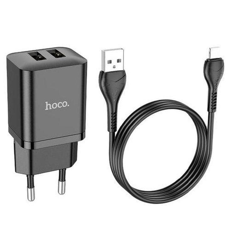 Зарядний пристрій hoco n25 2.1 a 2 usb з кабелем lightning black