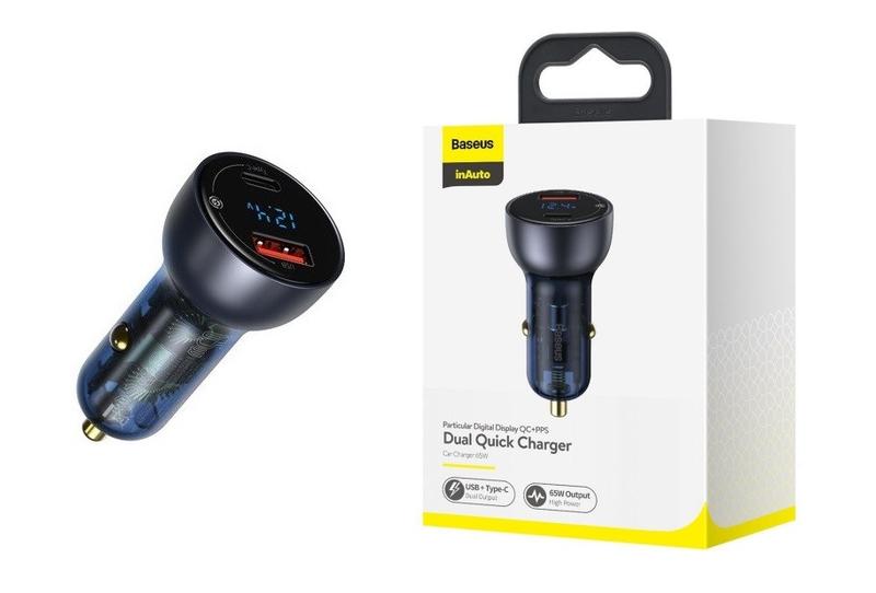 Baseus 65w автомобильный зарядный принтер pps pd/qc4.0 usb-c/usb-a particular с быстрой за...