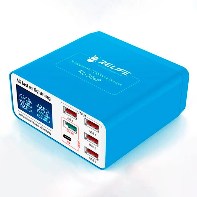 Откройте дверь в мир удобства с Relife RL-304P В нашем мире, где каждое устройство требует своей зарядки, получить мощное и эффективное решение - это как обрести ключ к упорядоченной жизни. Зарядное устройство Relife RL-304P превратит хаос многочисленных кабелей и адаптеров в организованное, функциональное пространство, позволяя Вам забыть о поисках правильного зарядного устройства для каждого из Ваших гаджетов. Приняв решение о покупке Relife RL-304P, Вы вкладываете в долгосрочную эффективность и порядок. Одно устройство, множество функций - Ваш ежедневный помощник в мире технологий. Сделайте Вашу повседневную зарядку проще и безопаснее. Выбирая RL-304P, Вы выбираете максимальную производительность и комфорт для себя и Ваших близких. Зарядите свою жизнь энергией Relife - выберите RL-304P! Преимущества: Максимальная универсальность Отныне вам не придётся волноваться о совместимости зарядных устройств. Relife RL-304P готово обеспечить питание для целого спектра устройств, начиная от смартфонов Apple и Android, вплоть до планшетов и портативных игровых консолей, благодаря наличию порта USB-C с поддержкой PD 3.0 и классических USB портов с поддержкой QC 3.0. Продвинутая технология быстрой зарядки Используйте преимущества портов с поддержкой Quick Charge 3.0 и Power Delivery 3.0 для сокращения времени зарядки Ваших устройств. С Relife RL-304P Ваш смартфон будет заряжен до 50% всего за 30 минут*, что существенно эффективнее стандартных зарядных устройств. *Время зарядки зависит от модели устройства и поддержки протоколов быстрой зарядки. Экстра безопасность для Ваших гаджетов Защитите свои устройства от перегрузки, перенапряжения и перегрева. Многоступенчатая система безопасности Relife RL-304P удлинит жизнь ваших аккумуляторов и предотвратит случайные повреждения. Премиум качество и долговечность Каждый порт зарядного устройства спроектирован так, чтобы выдерживать многократное использование, а металлические контакты обеспечивают надёжное соединение и быструю передачу тока. Интеллектуальный информационный дисплей Оснащённый большим HD дисплеем, RL-304P предоставляет в режиме реального времени полную информацию о зарядке каждого подключенного устройства, включая напряжение и ток, что позволяет контролировать процесс зарядки. Продуманный дизайн для эффективного охлаждения Уникальная конструкция с многочисленными вентиляционными отверстиями обеспечивает отличный отвод тепла, предотвращая перегрев зарядного устройства даже при зарядке всех шести портов одновременно. Оптимизированное одновременное зарядное решение Забудьте о необходимости выбирать, какое устройство заряжать в первую очередь. С шестью USB портами RL-304P позволяет заряжать все ваши устройства одновременно, что экономит ваше время и освобождает пространство. Мобильность и компактность Несмотря на мощные функции зарядки, RL-304P имеет небольшие размеры и вес, что делает его удобным для хранения и идеальным для путешествий. Ваш надёжный источник питания теперь всегда с Вами. Лёгкость в использовании Интуитивно понятный интерфейс и автоматическое определение оптимального тока зарядки делают использование RL-304P простым и удобным для любого пользователя, несмотря на его продвинутые технологические характеристики. Умное энергораспределение Распределение энергии в RL-304P происходит интеллектуально, максимизируя скорость зар