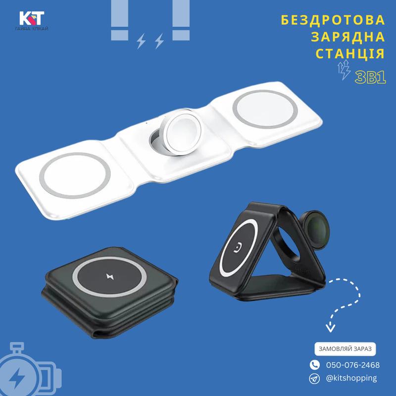 муркс (=^‥^=), вашему вниманию устройство, которое сократит вам нервы и километры проводов Чуть больше: ° Одновременная зарядка часов, телефона и наушников ° Трансформируй подставку как угодно, держатель для телефона ° Стандарт беспроводной зарядки: Qi (Технология магнитного притяжения) ° Поддержка зарядной мощности: 5 Вт/7,5 Вт/10 Вт/15 Вт/200 Вт ° Дизайн двойного светового дисплея ° Максимальная мощность 200Вт Вот и еще один помощник в твой карман, еще больше ты найдешь в наших соц.сетях