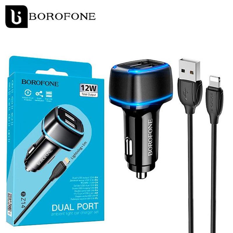 Автомобільний зарядний пристрій borofone bz14 max 2usb 2.4 a lightning black