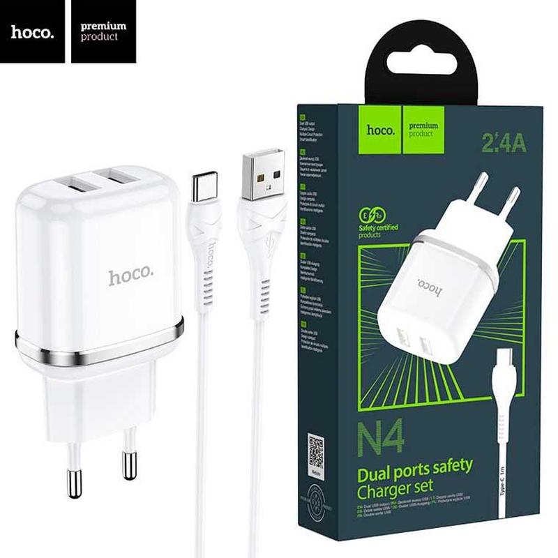 Сетевое зарядное устройство hoco n4 2usb 2.4a type-c white