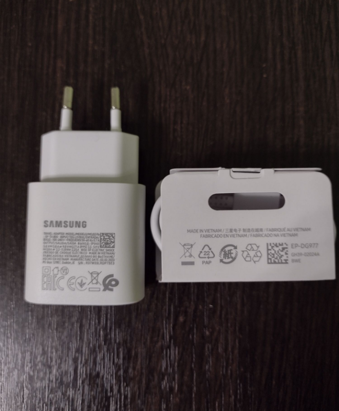 Без коробок. Характеристики Выход. напряжение 5V/3A 9V/2.77 11V/2.25A Сила струму 3А Категория Зарядные устройства для смартфонов Страна производитель Вьетнам Производитель Samsung . Производитель Samsung Номинальная мощность 25 Вт Состояние Новое Ток заряда 3 А Цвет Білий Пользовательские характеристики Выходной разъем 1 х USB Type-C Кабель Type-C - Type-C Особенности Супербыстрая зарядка Зарядний пристрій SAMSUNG-25w Оригінальне Блок и кабель type C на type C 1м Подходит ко всем смартфонам и павербанкам. Подходит к следующим моделям Samsung: A51,A34,A15,A13,A70,A71,A72,A80,A90,M31,M32,A33,M51,F52,A52,A53,F62,S20 FE,S20+,S21 FE,S21,S21 Ultra,S2,Note 10Note 20,Note 20ltra, FlZ2 и другие