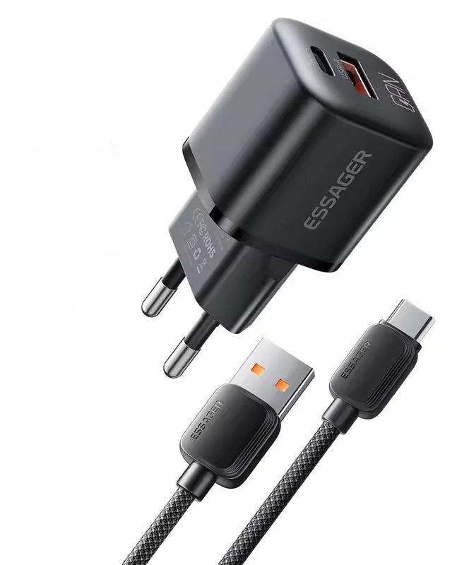 Быстрая зарядка USB/type-c Essager 20W, QC 2.0, QC 3.0, PD 2.0, PD 3.0, iP 2.4A, AFC, FCP, SCP. USB порт 18W type-c порт 20W Type C Output: 5V/3A, 9V/2.2A, 12V/1.67A (20W max) USB A Output: 5V/3A, 9V/2A, 12V/1.5A (18W Max) Type C + USB A Output: 5V/3A GaN Размеры 70.04 на 35.24 на 32.01 вес 43 грамма