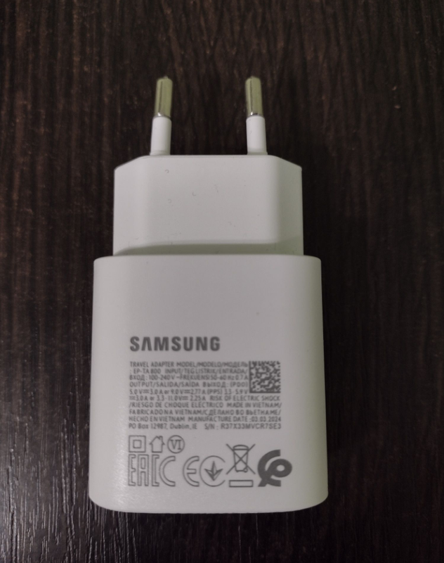 Основные Производитель Samsung Гарантийный срок 12 мес Страна производитель Вьетнам Длина 1000 мм Тип Сетевой Мощность 25 Вт Цвет Белый Назначение Универсальное Напряжение питания 220 В Количество USB портов 1 Номинальная сила тока 3 А Вид Адаптер Стан Новый Выходная мощность 25 Вт Выходное напряжение (output) 12 В Сила выходного тока 2 - А 2.9 Пользовательские характеристики Тип разъема Type C Зарядное устройство SAMSUNG-25w Оригинальное Блок Подходит ко всем смартфонам и павербанкам. Подходит к следующим моделям Samsung: A51,A34,A15,A13,A70,A71,A72,A80,A90,M31,M32,A33,M51,F52,A52,A53,F62,S20 FE,S20+,S21 FE,S21,S21 Ultra,S2,Note 10Note 20,Note 20ltra, FlZ2 и другие