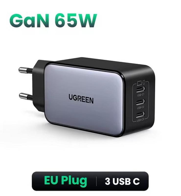 Ціна для замовлення післяоплатою, або передоплатою - 900 грн. Зарядное UGREEN NEXODE 65W GaN Fast Charger X556. Новинка!!! Имеет 3 порта Type-C поддерживают до 65W Оригинал. Новые и запечатанные. В наличии. Дополнительно можно докупить кабели: Essager 100w 0,5 type c- type c - 120 грн Baseus 100W 1m type c- type c - 140 грн Baseus 100W 2m type c- type c - 200 грн Baseus 240W 1m - type c- type c - 200 грн Baseus Type C - Lighting 20W 0,5 м чорний - 120 грн Baseus Type C - Lighting 20W 2м чорний - 200 грн Ugreen Type C - Lighting 20W 1m зеленй -200 грн Ugreen Type C - Lighting 20W 2m чорний -300 грн Технические характеристики: • Модель: X556 • Вход: 100-240V, 50/60Hz, 1.8A Max • Количество портов: 3 USB-C • Выход: - USB-C1: 5V/3A, 9V/3A, 12V/3A, 15V/3A, 20V/3.25A 65W Max - USB-C2: 5V/3A, 9V/3A, 12V/3A, 15V/3A, 20V/3.25A 65W Max - USB-C3: 5V/3A, 9V/3A, 12V/3A, 15V/3A, 20V/3.25A 65W Max • Максимальная выходная мощность: 65W • Совместимость: универсальное