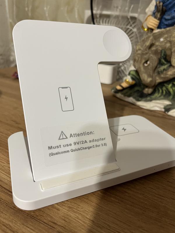 Швидка бездротова зарядка 15W 3в1 для телефону iPhone/навушників AirPods/годин Apple Watch FDGAO B381 чорна (FО-45879) Бездротова зарядка FDGAO B372 сертифікована за стандартом QI. Живлячись тільки від однієї розетки, заряджає 3 пристрої одночасно. Універсальний зарядний пристрій підтримує Iphone, Apple Watch і AirPods всіх серій, що мають бездротову зарядку. Можна заряджати телефон, розумний годинник та навушники одночасно, для економії вашого часу. Як тільки ви поставите свої гаджети на магнітну підставку, вона автоматично виявить ваші пристрої та запустить зарядку. Універсальна зарядна станція потужністю 15 Вт заряджає швидше, ніж стандартні зарядні пристрої. Можливість вертикальної та горизонтальної зарядки з гнучким кутом нахилу дозволяє зручно переглядати відео або здійснювати відеодзвінки і одночасно заряджати телефон. Передова захисна технологія автоматичного керування для запобігання перезаряджання, перевантаження, контролю температури та виявлення сторонніх тіл захистить ваші пристрої. Зарядна станція не виділяє шкідливих випромінювань і є безпечною для оточуючих. Характеристики: Вхідний струм/напруга: 9V-2A,5V-3A Потужність заряду телефону: 15W/10W/7.5W/5W Потужність заряду годинника: 2W Потужність заряду навушників: 5W Робоча частота: 110-205KHz Комплектація: фірмова коробка кабель USB Type-C (1 метр) інструкція англійською мовою Примітка: Для роботи на максимальній потужності зарядний пристрій необхідно підключити до 2-х амперного (2А) 9-вольтового (9V) блоку живлення (Quick Charge 3.0) в комплект не входить. При одночасному заряді кількох пристроїв максимальна потужність розподіляється між усіма пристроями. Металеві чохли, кільця для телефонів, магнітні кріплення використовувати не можна