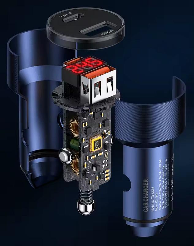 Полностью новое автомобильное зарядное устройство в прикуриватель Toocki TQ-CC08 75W (Type-C 45w + USB-A 30w) черного цвета, есть встроенный вольтметр. Общая мощность 75 Вт, поддержка быстрой зарядки для 2 устройств одновременно. Алюминиевый корпус лучше отводит тепло. Вольтметр показывает на дисплее текущее напряжение в сети автомобиля. Общая выходная мощность: 75W Type-C порт: 5A/3A; 4.5/5A; 5V/4.5A; 9V/3A; 12V/3A, 20V/2.25A (Max 45 W) USB-A порт: 5V/3A; 9V/3A; 12V/2.5А (Max 30W) Входное напряжение: 12-24V DC Полностью новое автомобильное зарядное устройство в прикуриватель Toocki TQ-CC08 75W (Type-C 45w + USB-A 30w) черного цвета, имеет встроенный вольтметр. Общая мощность 75 Вт, поддержка быстрой зарядки для 2 устройств одновременно. Алюминиевый корпус лучше отводит тепло. Вольтметр отображает на дисплее текущее напряжение в сети автомобиля. Общая выходная мощность: 75W Type-C порт: 5A/3A; 4.5/5A; 5V/4.5A; 9V/3A; 12V/3A, 20V/2.25A (Max 45 W) USB-A порт: 5V/3A; 9V/3A; 12V/2.5А (Max 30W) Входное напряжение: 12-24V DC