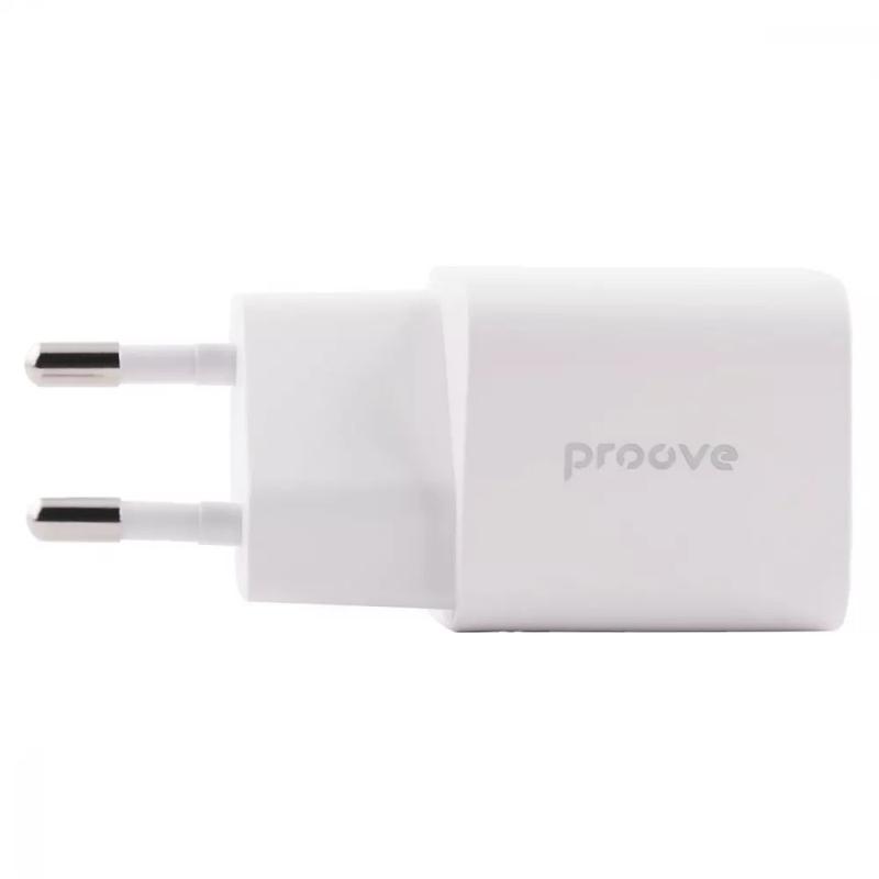 Зарядний пристрій proove silicone power plus 20w type-c + usb white
