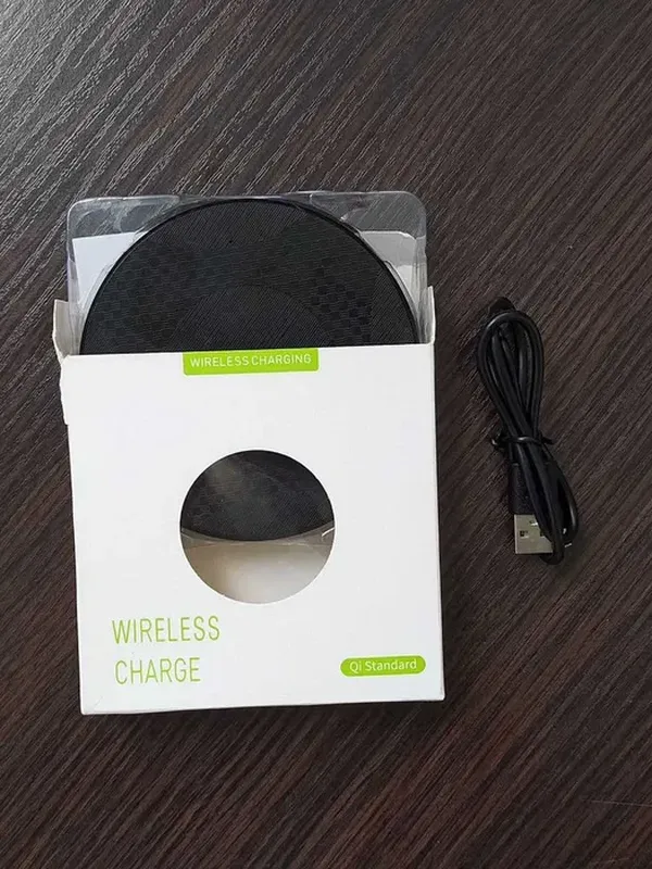 Діаметр 10 см, має світловий індикатор. НЕ заряджає телефони або гаджети БЕЗ функції безпровідної зарядки. Роз'єм для зарядки Micro USB.