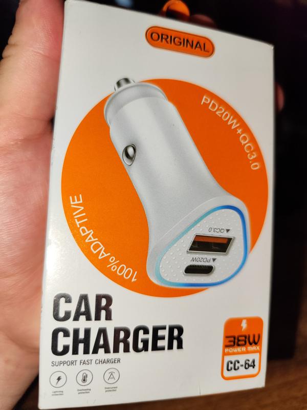 Параметры: Вход: DC 12-24 В Максимальная выходная мощность: 38 Вт Выход Type-C PD3.0: 5В - 3,1 A, 9В - 2,2A, 12В - 1,7 A Выход USB QC3.0/AFC: 3,6В - 6,5В, 3A; 6,5В - 9В, 2A; 9В - 12В, 1,5A. Размер: 65 * 30 * 31 мм Вес: 43 г Материал корпуса: черный, (ABS + PC + алюминиевый сплав) огнестойкий материал 94V0 QC3.0: Совместим с Huawei Super Fast Charge SCP 20 Вт, Xiaomi / Samsung (QC3.0/AFC), Meizu PE2.0/3.0 и другими мобильными телефонами быстрой зарядки, Apple 2.4A iPhone SE/11/X... Подходит для быстрой зарядки Apple PD, быстрой зарядки iPhone 12/SE/11/X 20 Вт, подходит для быстрой зарядки Samsung Note 10 20 Вт