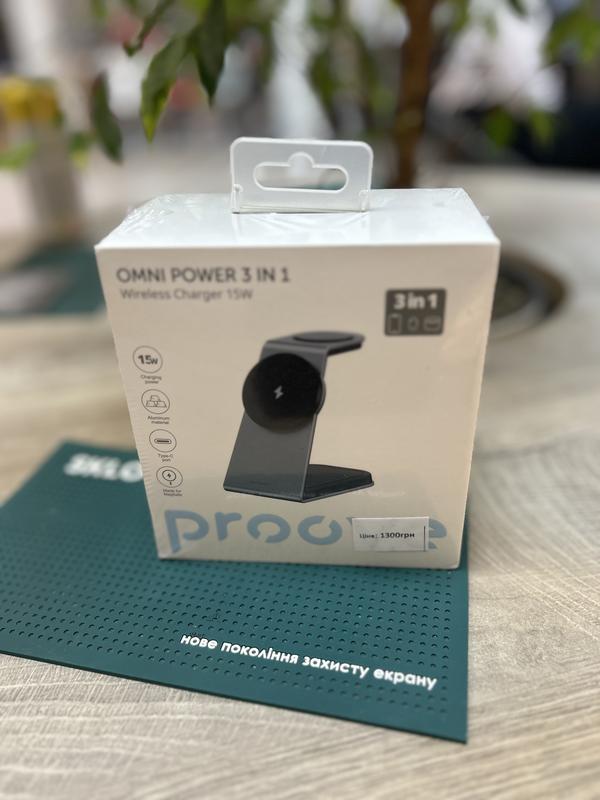Бездротовий зарядний пристрій Omni Power 3 в 1 (15W) — стильна та функціональна станція для зарядки. Виготовлений з алюмінію, підтримує Type-C, сумісний із MagSafe. Забезпечує швидке зарядження (15W) для смартфонів, навушників і смарт-годинників. У комплекті — компактна конструкція з ергономічним дизайном.