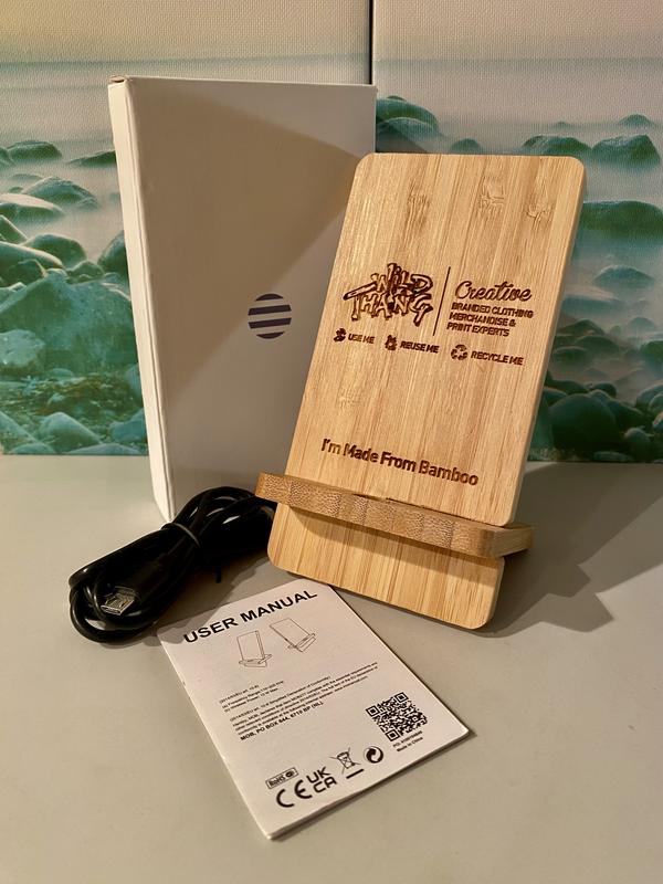 Бездротовий зарядний пристрій та тримач для смартфону бамбук