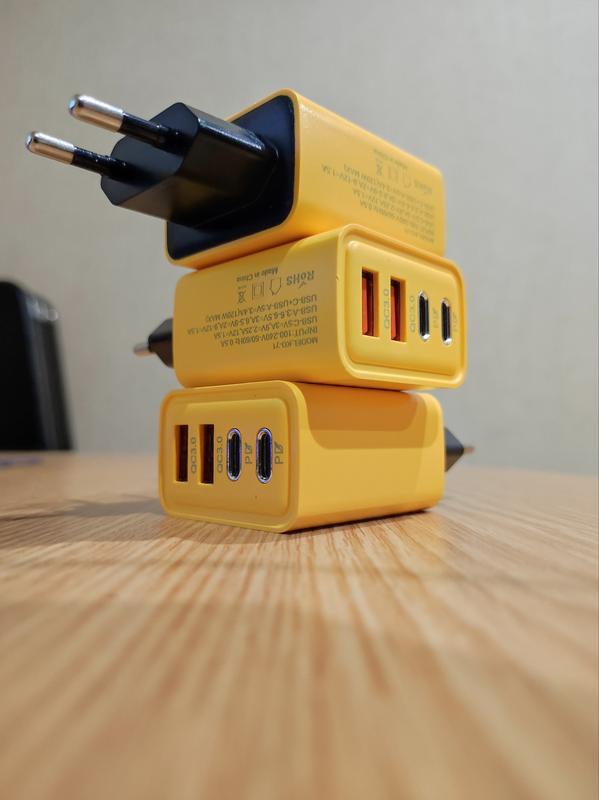 Зарядный блочек мощностью 120W 2x USB Да 2х Type-c В наличии желтый и черный цвета Новый! Товар протестирован, проверен временем. Гарантия 2 года!