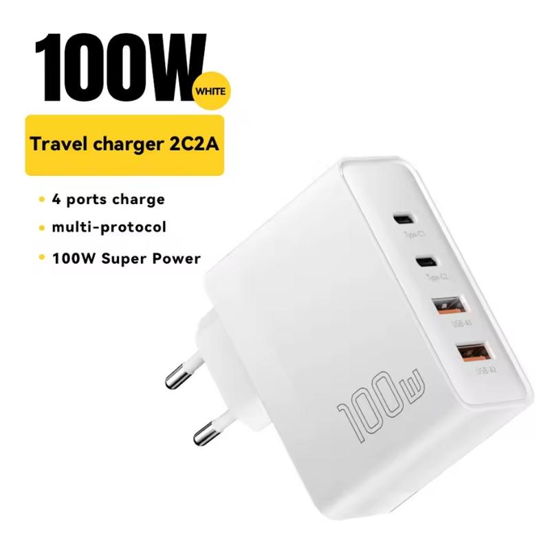 Зарядное устройство Essager 100W GaN ES-CD37 2U+2C black Технология GaN: зарядное устройство использует технологию GaN, что делает его более компактным и эффективным, чем традиционные зарядные устройства. Два порта C: два порта C позволяют заряжать два устройства одновременно, экономя время и силы. Быстрая зарядка 4.0 и 3.0: зарядное устройство поддерживает технологии Quick Charge 4.0 и 3.0, что обеспечивает быструю зарядку совместимых устройств. Высокая выходная мощность: максимальная выходная мощность 100 Вт позволяет зарядить даже энергоемкие устройства, такие как MacBook Pro. Характеристики: Название продукта: 100 Вт GaN-зарядное устройство с четырьмя портами Модель: P100AU01A3C0 Материал: ПК Цвет: черный/белый Плюс: США, Великобританія, США, Корея Входное напряжение: 100-240 В ~ 50/60 Гц, 2,5 А Тип C1: 5 В/3 А; 9 В/3 А; 12 В/3 А; 15 В/3 А; 20 В/5 А (макс. 100 Вт) Тип C2: 5 В/3 А; 9 В/3 А; 12 В/3 А; 15 В/3 А; 20 В/5 А (макс. 100 Вт) Тип C3: 5 В/3 А; 9 В/2,22 А; 12 В/1,67 А (макс. 20 Вт) USB-A: 4,5 В/5 А; 5 В/4,5 А; 9 В/2 А; 12 В/1,5 А (макс. 22.5 Вт) Поддержка быстрой зарядки PD, FCP, AFC