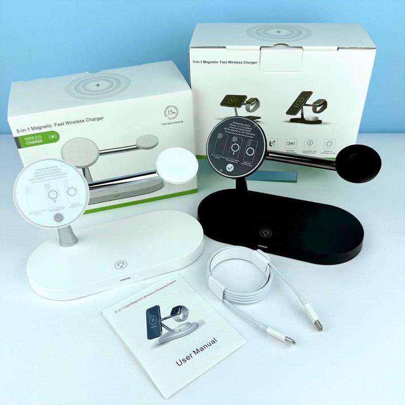 Беспроводное зарядное устройство 5in1 magnetic для iphone, apple watch, airpods 15w black