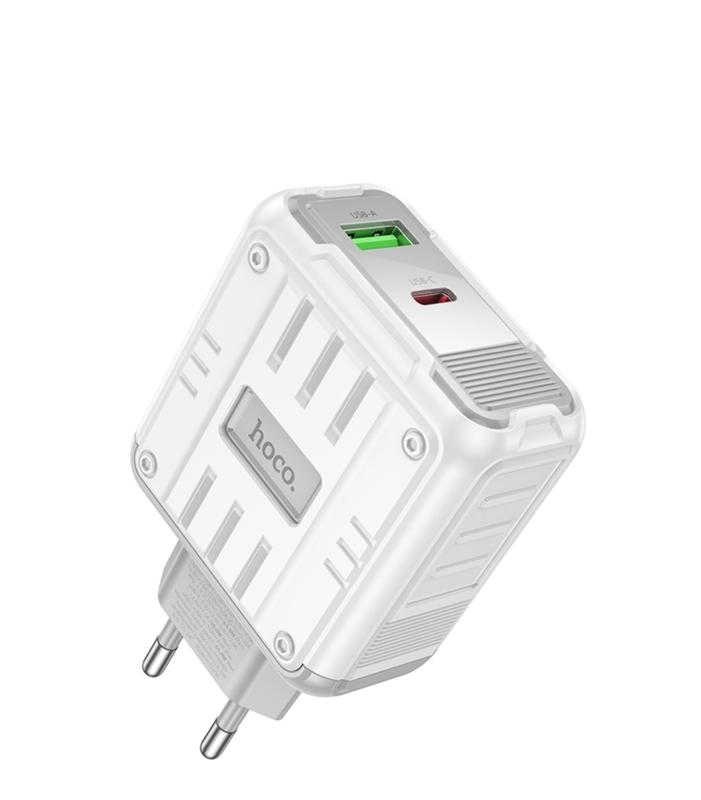 Материал: огнеупорный PC+ABS для высокой прочности и защиты от перегрева. Выходная мощность: Type-C: 65W (поддержка PD/QC/FCP/AFC для быстрой зарядки); USB-A: 18W (поддержка QC/FCP/AFC для совместимых устройств); Type-C + USB-A: общий выход 5V/3A. Размер: 96.4*57.1*32.5 мм, вес: 88 г – компактность и легкость для удобного использования в любых условиях.