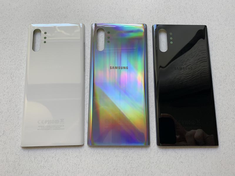 Виробник: Інший виробник Кілька примірників у наявності задня кришка (заднє скло корпусу) сервісна високої якості для Samsung Galaxy Note 10 (N970) і Galaxy 10+ (N975) для заміни: в наявності в кольорах: Aura Glow, Aura White, Aura Black Якщо ви розбили свою рідну задню кришку, можете поміняти на нову оригінальну ззаду під плівкою клейка основа для легкої установки Відправка НОВОЮ ПОШТОЮ в день замовлення!