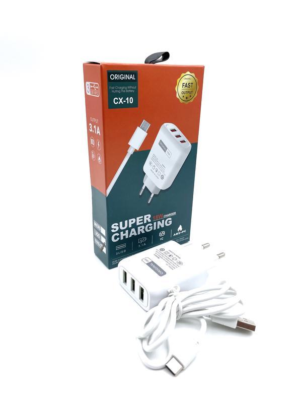 Сзу адаптер 220v type-c cx-10 на 3 usb