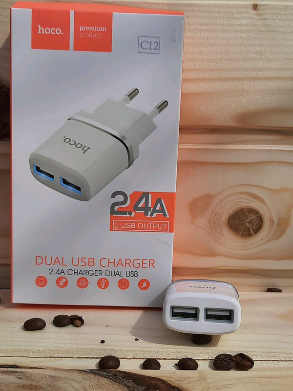 Зарядний мережеве hoco c12 (2usb 2.4 a) білий