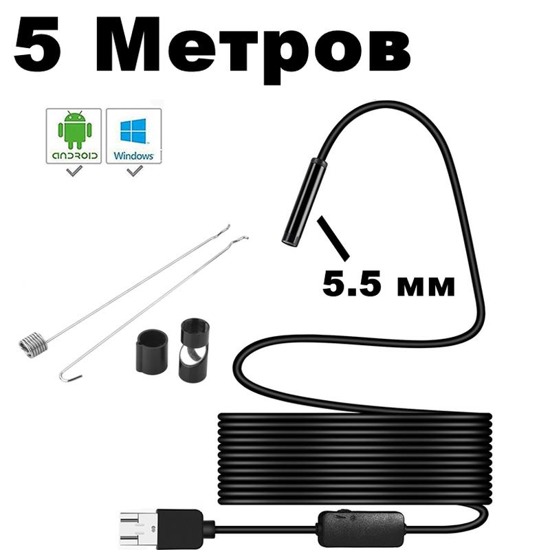 Цифровой usb эндоскоп soft 5 метров / 5,5 мм для android, pc. технический бороскоп для сма...