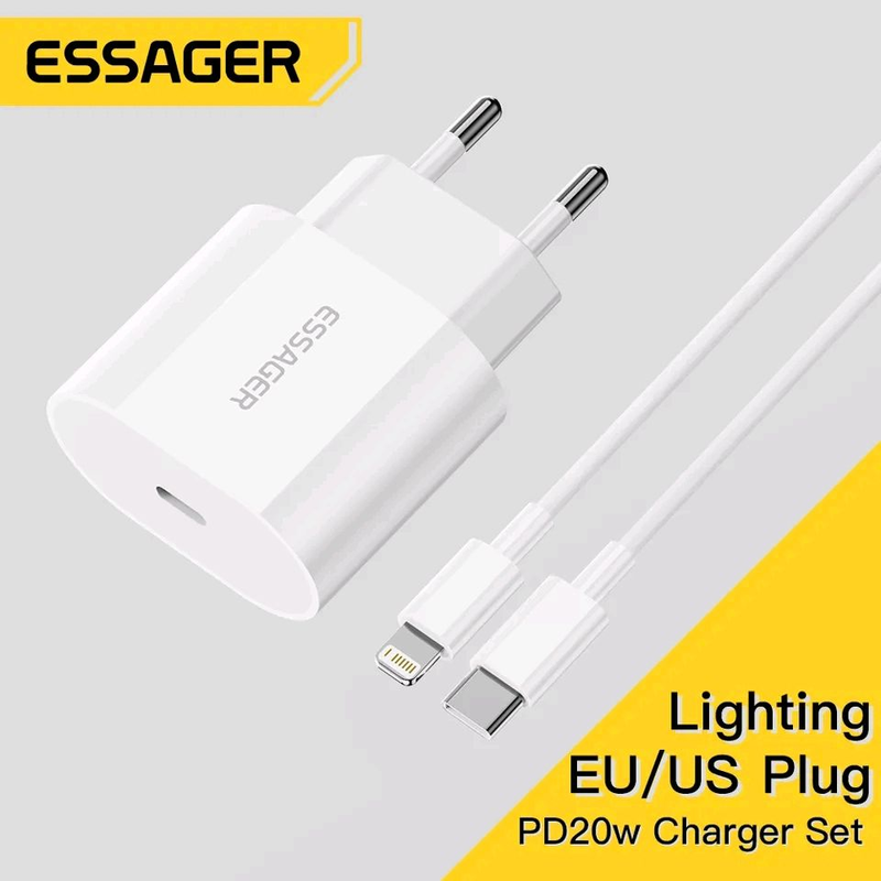 Комплект зарядний пристрій essager pd 20 вт для iphone+ кабель