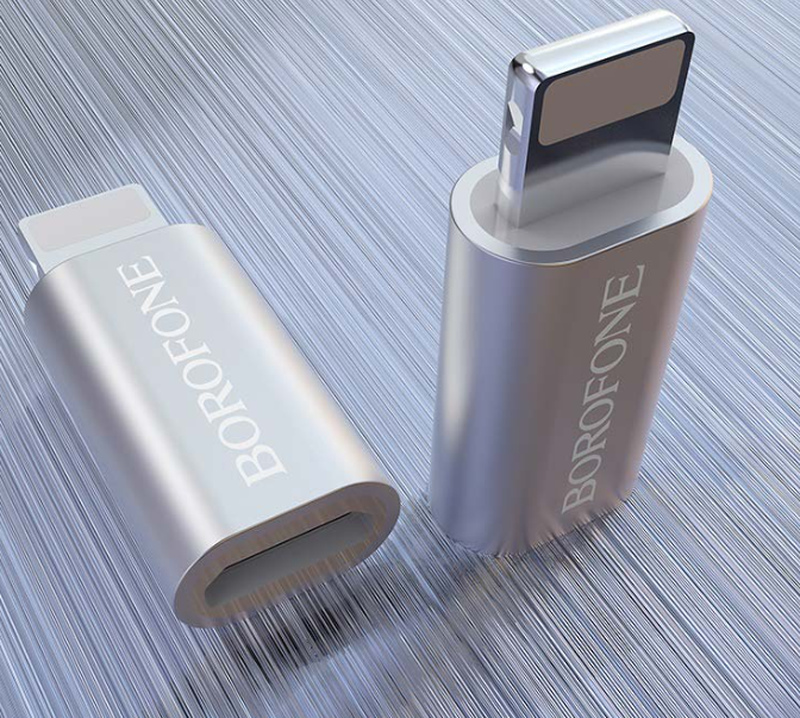 Тип комплектуючих: Інший тип комплектуючих Адаптер adapter Micro-USB к Lightning lightning адаптер для iPhone; переходник для айфона c микро ЮСБ; Переходник на айфон Micro USBадаптер Micro-USB к Lightning, преобразователь, поддержка OTG, корпус из алюминиевого сплава, легкий и портативный. 1. Материал: Алюминий. 2. Функция: превратить порт Micro-USB на Lightning. 3. Поддержка зарядки и синхронизации данных. 4. Размер: 2,5 * 1,5 * 0,6 см. Вес: 1г. OTG - перехідник Borofone BV5 Micro To Lightning - якісний і надійний аксесуар від бренду Borofone. Пропонується в стильної брендового упаковці. Аксесуар дозволяє підключити ваш пристрій, як для синхронізації і обміну даними, так і для зарядки. Модель має невеликі розміри і вага, що гарантує зручність при її використанні. Корпус перехідника реалізований з округленими гранями, виготовлений з міцного металу. Встановлення з'єднання між пристроями здійснюється через micro-usb – lightning Borofone Адаптер-переходник Lightning (8Pin) - microUSB BV5/Micro USB переходник для iPhone Lightning/Адаптер
