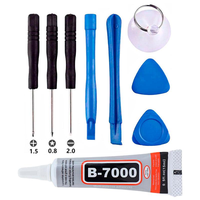 Набор для ремонта смартфона / отвертки / медиаторы / лопатки / присоска / клей b7000 прозр...