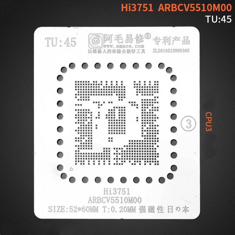 Трафарет bga amaoe hi3751 / arbcv5510m00 cpu (tu:45) 0,20mm
