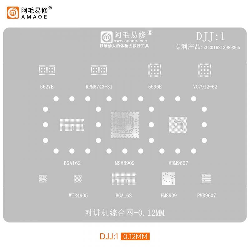 Трафарет bga amaoe djj:1 cpu snapdragon msm8909 / mdm9607 / bga162 (0.12mm)