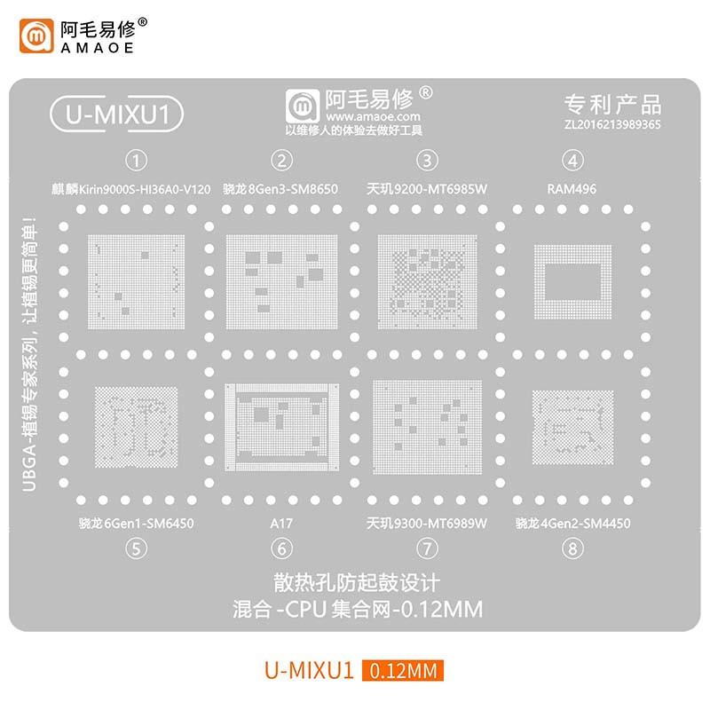 Трафарет bga amaoe u-mixu1 cpu snapdragon sm8650/sm6450/sm4450 / mtk mt6989w / kirin 9000s...
