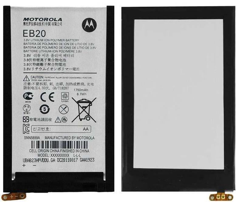 Бренд :MOTOROLA Тип контактов :19RM Номинальная запасаемая энергия / Rated Capacity, Wh :6.7 Ширина, мм :58 Толщина, мм :2.5 Номинальный запасаемый заряд / Rated Capacity, mAh :1750 АКБ Упаковка :Техническая упаковка Тип АКБ :Li-ion Высота, мм :95.5 Номинальное напряжение батареи / Rated Voltage, V :3.8