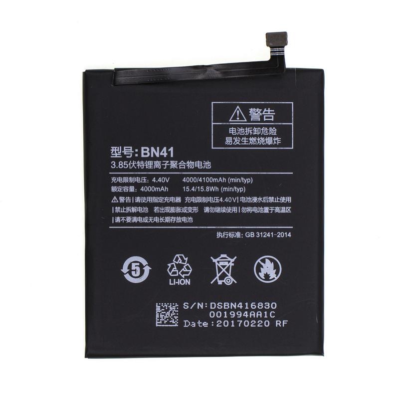 Аккумуляторная батарея для Xiaomi BN41 / Redmi Note 4 АAAA-Class высокого качества, имеющая ёмкость 4000 mAh. Технические параметры этого аккумулятора полностью соответствуют тем, что заявлены производителем на этикетке изделия. Класс качества АААА означает, что этот аккумулятор имеет фактическую ёмкость минимум 90-100% от номинальной, которая обозначена на упаковке. Безопасная работа устройства гарантируется наличием контроллеров перезаряда и переразряда. В нашем магазине вы можете по самым лучшим ценам купить аккумуляторы для телефонов оптом.
