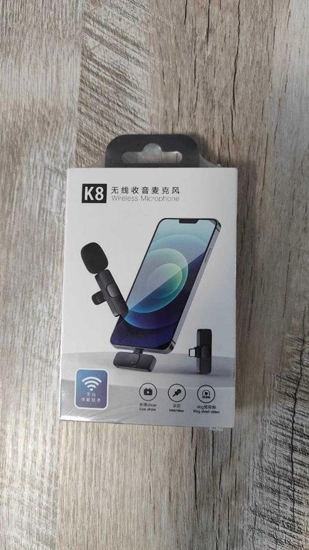 Бездротовий мікрофон К8. Для android телефона. Зарядка type-c. Радіус роботи до 20 метрів. Мікрофон у плівці.
