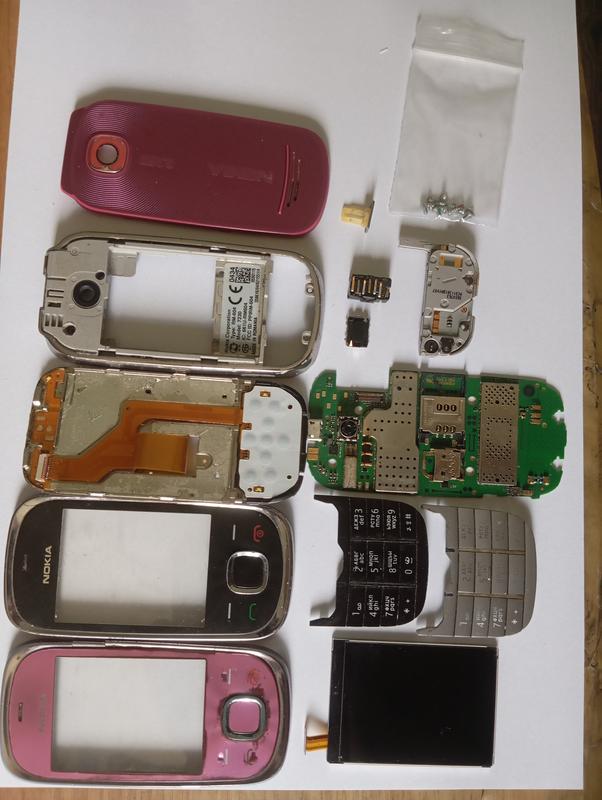 передня частина корпусу з верхньою клавіатурою, ідеальний стан (рожева - 2шт, чорна - 2шт) = 100 грн/шт механізм слайдера + міжплатний шлейф (є 3шт) = 140 грн/шт задня частина корпусу + роз'єм зарядки (є 4шт) = 40 грн/шт задня кришка рожева = 140 грн дисплей 4850304 робочий (є 2шт) = 140 грн/шт цифрова клавіатура ідеальний стан (чорна - 2шт, срібна - 2шт) = 65 грн/шт материнська плата робоча (є 3шт) = 140 грн/шт верхній динамік (є 2шт) = 35 грн/шт роз'єм аудіо (є 4шт) = 10 грн/шт задній динамік в корпусі з мікрофоном (є 4шт) = 50 грн/шт заглушка usb роз'єму (є 2шт) = 50 грн/шт гвинти (є 11шт) = 5 грн/шт . при замовленні на суму меньше 150 грн береться додаткова комісія +15 грн до вартості замовлення.