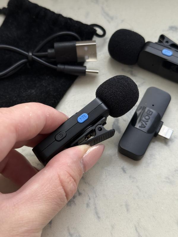 Продам мікрофон Boya Стан ідеальний Був у використанні до 5 разів Продаю,бо змінила телефон і тепер не підходить вхід. В комплекті: вхід lighting , 2мікрофони, кабель-зарядка, мішечок.
