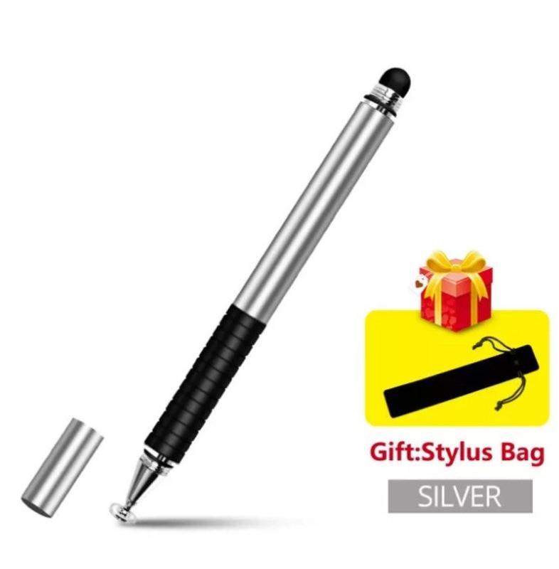 Стилус для рисования ёмкостный двухсторонний 2 в 1 серебристый + чехол в подарок