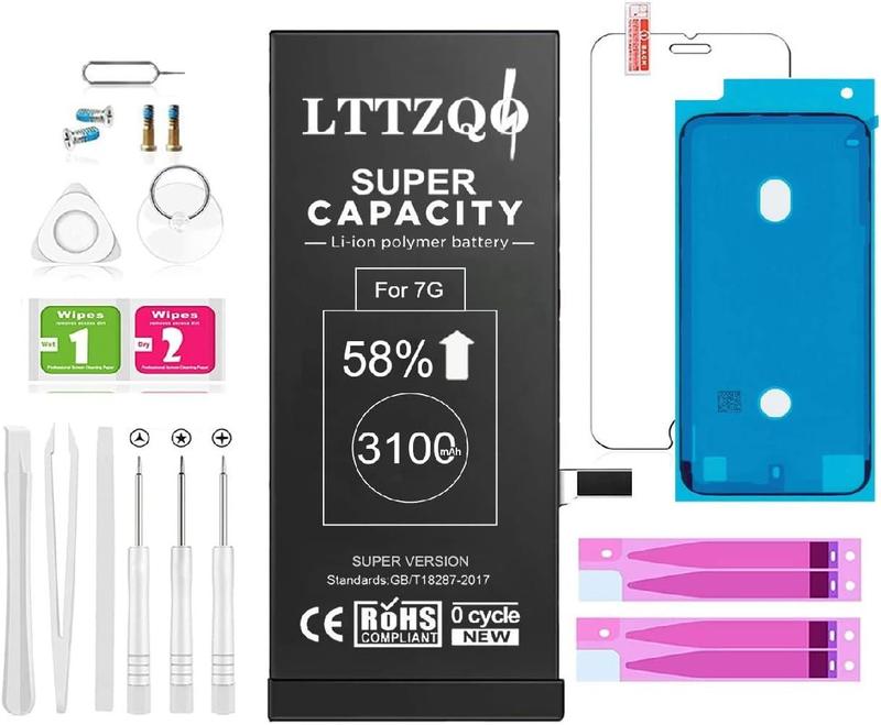 Батарея большой емкости, совместимая с iPhone 7, A1660, A1778, A1779, 58% Plus High 3100 мАч, полный ремонтный комплект, клей Ruben Об этом товаре - СОВМЕСТИМОСТЬ - Совместимо с iPhone 7 A1660, A1778, A1779 [ПРИМЕЧАНИЕ: НЕ для других моделей iPhone.] Перед покупкой проверьте модель своего смартфона. - Аккумуляторы LTTZQO обеспечивают гораздо большую емкость: 3100 мАч. Емкость на 58% больше, чем у оригинала, вы можете сразу отремонтировать свой телефон и сэкономить много денег! Наслаждайтесь временем автономной работы в течение всего дня без подзарядки. - Международные сертификаты: каждая батарея проверяется нашим специалистом перед отправкой. Аккумуляторы соответствуют стандартам CE RoHS FCC и WEEE для предотвращения перегрева, короткого замыкания и перезарядки. - Аккумулятор поставляется с отверткой, лентой и другими инструментами, облегчающими установку. Мало того, что у вас будет больше времени, так оно еще и будет использовано для замены батареек от #