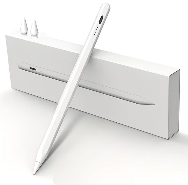 Универсальный стилус белого цвета Подходит для телефона, планшета и других сенсорных устройств. Удобный и точный в использовании, идеально подходит для рисования, написания заметок и работы с экраном. У комплекті: Стилус. 2 сменные насадки. кабель для зарядки.