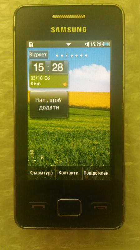 Samsung S 5260 - стильний, функціональний мобільний телефон від компанії Samsung, виконаний у форм-факторі моноблока. Виготовлений з якісних матеріалів, що забезпечить довготривале використання телефону. Дана модель оснащена екраном, що підтримує розширення 240x400 пікселів і здатним передавати до 256 тисяч різних відтінків, а також 3.2-мегапіксельною камерою, що дозволить робити достатньо якісні знімки і відеозаписи. Чудовим доповненням до всього цього можна вважати і вбудовані в Samsung S 5260 веб-браузер, MP3-плеєр, FM-радіо, а також різні додатки для розваг, а потужна акумуляторна батарея, ємністю 1000 мАг, забезпечить час роботи до 780 хвилин в режимі розмови. Усе працює на ура, та стоїть усе по заводу Комплектаціа телефон аккумулятор