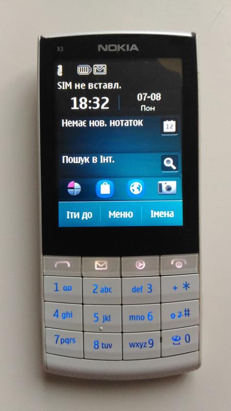 Виробник: Nokia Основна камера: До 5 Мп Фронтальна камера: Немає Стандарт ?GSM 850, GSM 900, GSM 1800, GSM 1900, UMTS (WCDMA)Продукт кодRM-639, RM-775Платформа ?Series 40 6th Edition, Feature Pack 1Длина106.2 ммШирина48.4 ммТолщина9.6 ммВес77.4 р. Акумулятор Nokia X3-02 Touch and Type Тип батареї ?Li-ion (BL-4S)Ємність ?860 мАһВремя ожидания430 чВремя разговора5.3 чВ режимі MP3-плеера28 чКорпусКонструкция корпусатрубкаМатериал корпусапластикЦвета корпусаPetrol blue, White silver, Pink, Dark metal, LilacВстроенная антеннаДисплей X3-02Технология екрану ?TFTКол кольорів ?262 тис. цветовРазмер экрана240 x 320 рхДиагональ ?2.4 "Сенсорний дисплей ?резистивныйРабота з звукомЗвонокполифоническийМр3 на звонокСтерео звонокВиброГолосовой набір ?Голосове управління ?Гучний зв'язок ?ДиктофонFM-радіо ?MP3-ПлеерКонтактыНомера в пам'яті аппаратаРасширенная книга контактів ?Підтримка груп абонентів ?Пам'ять Nokia X3-02Объем енергонезалежній пам'яті ?50 МВОбъем оперативної пам'яті ?64 МВПоддержка карт пам'яті ?microSD (TransFlash), microSDHCМакс. объем карты памяти32 GBКороткие сообщенияMMS ?SMS ШаблоныПередача данныхWAP ?v 2.0E-mail клиент ?HTML-браузер ?HTML, xHTML, WAP 2.0, Flash Lite 3.0HSUPA ?HSDPA ?HSPA ?EDGE ?GPRS ?WiFi ?802.11b, 802.11g, 802.11n (WEP, WPA, WPA2)Bluetooth ?2.1 (+ EDR)Стерео Bluetooth (A2DP) ?AVRCP ?Входы/выходыТип разъёма для ПКmicroUSBТип разъёма для з/уUSB + 2.0ммUSB выходv 2.0USB OTGАудиовыход3.5ммФото/ВидеоВстроенная камерасм. примеры фотоКоличество пикселей ?5 MpxРазрешение камеры ?2592 x 1944 pxЦифровой zoom ?4 XПоддержка Видео3GPP formats (H.263), H.264/AVC, MPEG-4, WMVМакс. кількість кадрів в секунду18 fpsМакс. дозвіл видео640 x 480 рхДополнительно про Нокіа X3-02ОрганайзерКалендарьНастраиваемые профілі ?Java ігри та програми ?MIDP 2.1 Телефон привезений з Європи. Б/У В ідіальному стані Дінаміки не хриплять Звук чіткий і гучний На стіклі е незначні потертості, на фото видно Стоїть усе рідне Сам телефон зручний Сам телефон і акб 100%Original.