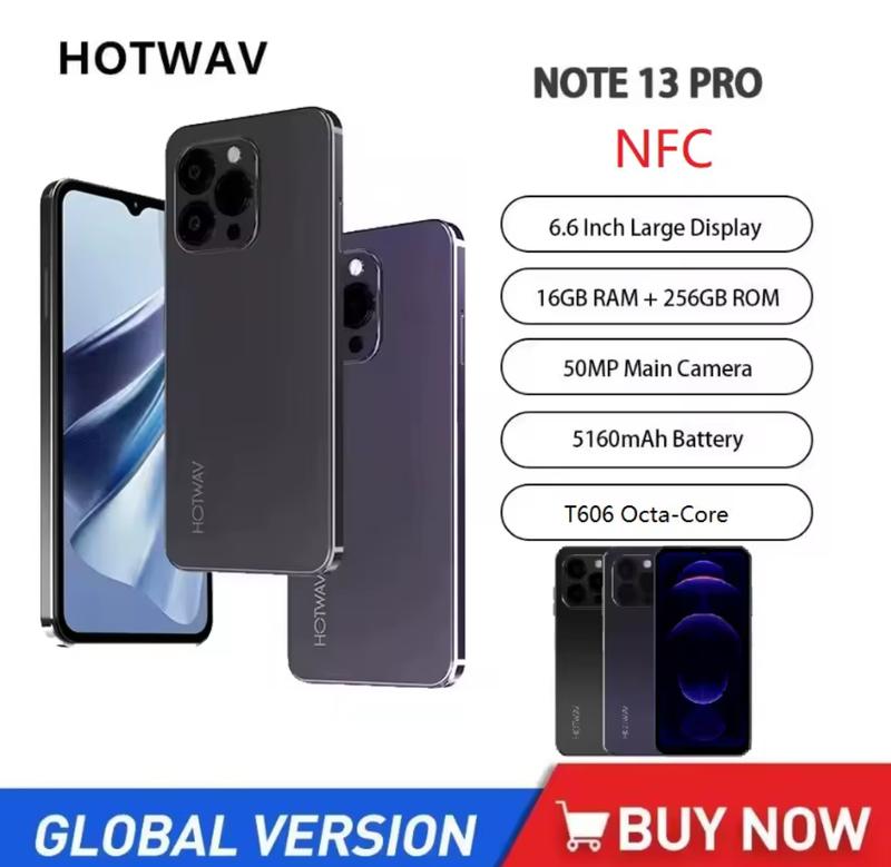 Виробник: Hotwav Основна камера: 50 Мп Фронтальна камера: 16 Мп Кілька примірників у наявності Смартфон Hotwav Note 13 Pro 8(8)+256 Гб - очередная модель относительно нового бренда, в которой основной фишкой является совокупность отличного дизайна и современных характеристик, и все это "приправлено" супер низкой ценой. В руках смартфон сидит отлично: в комплекте есть прозрачный силиконовый бампер, который убережет корпус от повреждений. В целом - смартфон копирует внешность современных смартфонов Apple, как делают и многие другие бренды, но сделано это весьма качественно. Характеристики Основные Форм-фактор Моноблок Стандарт связи 3G (UMTS, HSUPA, HSPA), 4G (LTE) Состояние Новое QWERTY-клавиатура Да ОС Android Тип SIM-карты Nano-SIM Режим работы нескольких SIM-карт Одновременный Материал корпуса Стекло, Металл, Пластик, Поликарбонат Влагозащищенный корпус Да Цвет Чёрный, фиолетовый Стандарт Bluetooth 5.0 Тип устройства Смартфон Экран Тип экрана IPS Диагональ экрана 6.6 дюйм Разрешение экрана 1612х720 Количество цветов экрана 16 млн. цветов Сенсорный экран Да Память и процессор Процессор Unisoc T606 Количество ядер 8 Видеопроцессор Mali-G57 Объём встроенной памяти 256 GB Объем оперативной памяти 8192 MB Питание Емкость аккумулятора 5160 мА/ч Возможность подзарядки от USB Да Камера Задня камера 50 + 2 Мп Фронтальна камера: 16 Мп Дополнительно Wi-Fi: 802.11 a/b/g/n/ac Інтерфейс підключення: Type-C Частота оновлення 90 Гц