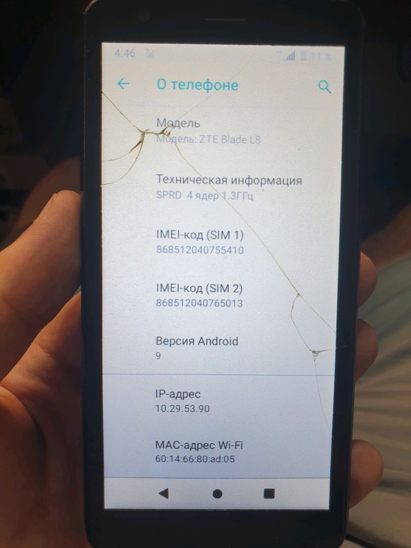 Zte blade l8 1/16gb android 9 все працює битий тач немає кнопок
