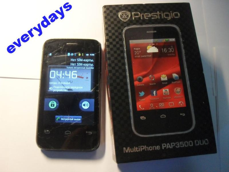 Мобильный телефон Prestigio MultiPhone 3500 Duo #385 ( ДИСПЛЕЙ ЦЕЛЫЙ. СЕНСОР РАБОЧИЙ В 90%ЭКРАНА. СТЕКЛО ТРЕСНУТОЕ. ВКЛЮЧАЕТСЯ, РАБОТАЕТ. СМОТРИТЕ ФОТО!!!) !!! В ремонте вроде как не был. Внешнее состояние на 4-. В комплекте идет телефон, аккумулятор, задняя крышка, коробка, книжечки. Я ремонтами не занимаюсь продаю товар в том виде в котором он ко мне приходит! Телефон продается на запчасти без претензий и возвратов! P.S. Иногда могу что-то забыть или ошибку допустить СПРАШИВАЙТЕ И УТОЧНЯЙТЕ не СТЕСНЯЙТЕСЬ ))) Отправка в другой город производиться по предоплате в 100 грн на карту ПРИВАТ БАНКА. Отправка в течении 1-3 рабочих дней после оплаты начиная со следующего дня! Для уточнения всех подробностей пишите и мы Вам ответим на любой Ваш вопрос! Читайте внимательней что покупаете!!! Технические характеристики Поддержка нескольких СИМ-карт 2х Операционная система Android Процессор Qualcomm MSM7225A-AB 1 ГГц Размеры и вес 116 x 62 x 11.2 мм Вес: 120 г Форм-фактор телефона Сенсорный моноблок Дисплей 3.5" LCD, сенсорный емкостный Разрешение: 320 x 480 пикс Камера 2 Мп Разрешение: 1600 x 1200 пикс Видео с разрешением VGA (640 x 480 пикс) Дополнительные функции: цветовые эффекты, резкость, насыщенность Стандарт GSM 900/1800 МГц WCDMA 2100 МГц Размеры СИМ-карты Mini-SIM Функции памяти Оперативная: 256 МБ Встроенная: 512 МБ Поддержка карт памяти microSD (до 32 ГБ) Развлечения Игры FM-радио Поддерживаемые аудио форматы: mp3, eaaC+, aac, aac+ Поддерживаемые видео форматы: mpeg-4, wmv, h.263, h.264 Поддержка социальных сетей Работа с сообщениями SMS, MMS, E-Mail (POP3 / IMAP4 / SMTP) Интернет EDGE, GPRS, HSDPA Беспроводные технологии Wi-Fi b/g/n Bluetooth 2.1 GPS Питание Литий-ионный аккумулятор, 1400 мА*ч 3003230350000