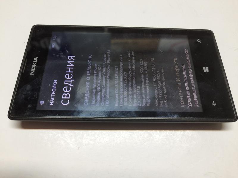 Смартфон б.у. Nokia 525 7546 - в ременте не был - экран рабочий - стекло целое - сенсор рабочий - заряжается - включается загружается звонит трубку можно снять и поговорить динамик и микрофон рабочие - вырвана с корнем клавиша включения работает все кроме этой клавиши - состояние смотите на фото Комплект поставки: телефон аккумулятор задняя крышка Imei: 359182050379224 Характеристики смотрите ниже: Экран 4" (480х800, сенсорный), IPS / моноблок / процессор 1 ГГц / камера 5 Мп / Bluetooth 4.0 / Wi-Fi 802.11 b/g/n / RAM 1 ГБ / 8 ГБ встроенной памяти + поддержка MicroSD / разъем 3.5 мм / A-GPS / A-Glonass / Windows Phone 8 / 119.9 x 64.0 x 9.9 мм, 124 г / черный Я ремонтами не занимаюсь продаю товар в том виде в котором он ко мне приходит! Телефон продается на запчасти без претензий и возвратов! P.S. Иногда могу что-то забыть или ошибку допустить СПРАШИВАЙТЕ И УТОЧНЯЙТЕ не СТЕСНЯЙТЕСЬ ))) Отправка в другой город производиться по предоплате в 100 грн на карту ПРИВАТ БАНКА. Отправка в течении 1-3 рабочих дней после оплаты начиная со следующего дня! ### Для уточнения всех подробностей пишите и мы Вам ответим на любой Ваш вопрос! Читайте внимательней что покупаете!!! 2972407202055