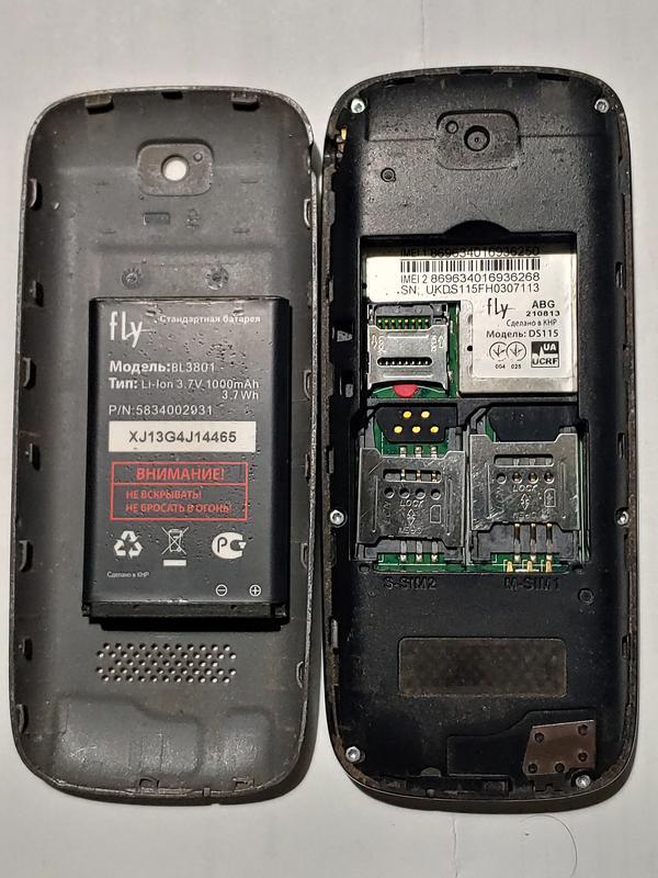 Основна камера: Немає Fly DS115 Включається, битий дисплей Стан і комплектації на фото