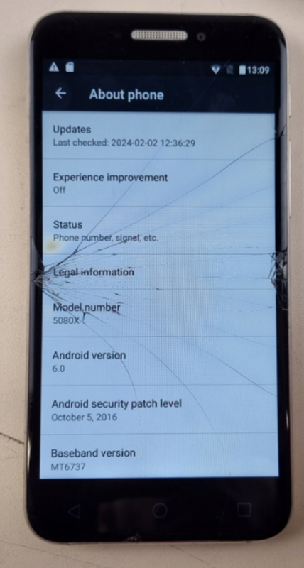 состояние погнут трещины все работает Основные Тип мобильного устройствасмартфон Классс большим экраном, для работы, для селфи Количество поддерживаемых SIM-карт, шт.2 Тип SIM-картыmicro SIM Дисплей Диагональ дисплея, дюйм5 Разрешение дисплея1280x720 Тип (цветность)цветной ТехнологияIPS Сенсорный экранда Защитное закаленное стеклода Процессор Производитель процессораMediaTek Название моделиMT6737 Количество ядер процессора4 Частота, МГц1.3 Память телефона Объем внутренней памяти, ГБ16 Объем оперативной памяти, ГБ2 Основная камера Разрешение камеры, МП13 Разрешение фронтальной камеры, МП5 мп Передача данных Коммуникационные возможностиNFC, USB, Wi-Fi, Разъем для подключения наушников, Bluetooth Платформа ОСAndroid Версия6.0 Питание Тип аккумулятораLi-Ion Емкость аккумулятора, мaч2460 Время работы в режиме разговора, ч20 ч (2G)/ 10 ч (3G)/ 5.3 ч (4G) Время работы в режиме ожидания, ч450 ч (2G)/ 430 ч (3G)/ 369 ч (4G) Дополнительные особенности Слот для карт памятиmicro-SD ДатчикиСканер отпечатка пальцев, Световой сенсор НавигацияAssisted GPS, GPS Встроенный тюнерFM - радио Цветчёрный Физические характеристики Ширина, мм71.2 Высота, мм141.5 Толщина, мм7.45 Файлы ИнтернетEDGE, 3G, 4G, GPRS