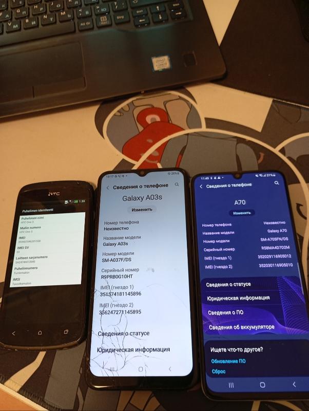 3 ТИСЯЧИ ЗА 3 ТЕЛЕФОНА!!) Продается 3 смартфона. Один из зных htc, рабский, 16гб памяти есть не вылики сколы камера хороша. Имеется 2 самсунга первый A03c и А70 стан в А03с дряблый, есть большой скол, памяти 32гб,камера хороша, состояние А70 негодягальник является не большой скол, памяти 128гб, камара хороша.