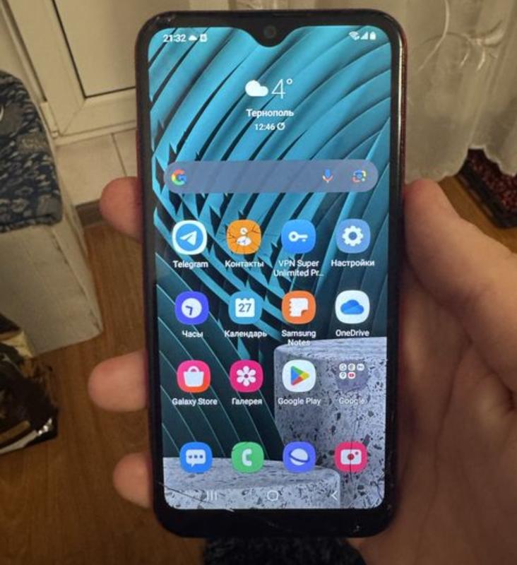 Телефон в хорошем состоянии,батарея держит, из нюансов треснутое стекло, его работа не влияет 32гб памяти
