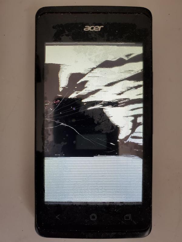 Телефон смартфон Acer Z200 Включается, заряжается. Экран разбит, сенсор целый, при прикосновении в разных местах слышны звуки. Акб присутствует, без крышки. Доставьсь в таком состоянии, история неизвестно.
